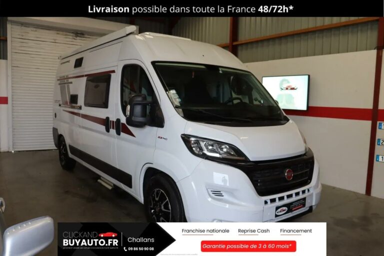 • Visible sur RENDEZ-VOUS du lundi au samedi de10h00 à 19h00. Possibilité de visite virtuelle : photos et vidéos complémentaires, envoi de l’entretien complet du véhicule et autres informations complémentaires (Whattsapp, SMS, Factetime..) Livraison possible sur toute la France en 48/72h (sur Devis). Possibilité de reprise cash sur tous types de véhicules. Solutions de financements adaptées et personnalisées. Possibilité d’extensions de Garantie jusqu’à 5 ans, pièces et main d’½uvre dans toute la France et l’Europe avec assistance 24h/24 et 7j/7, Nous sommes agrées SIV et pouvons réaliser votre carte grise SUR PLACE à l’agence. Pour plus d’informations, contactez-nous au 09 86 50 90 08 ou au 06 61 03 31 01. CLICKANDBUYAUTO . FR, UNE SOLUTION SIMPLE, RAPIDE ET EFFICACE POUR VENDRE OU ACHETER VOTRE FUTUR VÉHICULE. Allumage automatique des feux, GPS, Ordinateur de bord, Rétroviseurs rabattables, Volant multifonctions, Volant réglable, ABS, Airbags frontaux, Airbags lateraux, ESP, Régulateur de vitesse, Caméra de recul, Aide au démarrage en pente, 2 roues motrices*, jantes alu*, Limiteur de vitesse, Bluetooth, Climatisation automatique, Carte grise possible sur place*, Historique du véhicule*, Feux diurne a LED*, Rétroviseurs dégivrants, Attelage, Capacité eau propre 100L et eau grise 90L, Capacité coffre à gaz 1x13kg, Chauffage + eau chaude alimentation réservoir véhicule, Réfrigirateur 100L Trimixte, Batterie 1x105Ah, Store Exterieure Thule 375cm LH2, Panneau solaire, Eclairage interieur LED, Tapis de sol poste de conduite, Porte vélo, 4 Places : couchage 2 places et lit appoint 1 personne , Grande soute modulable accès interieur et exterieur, Marche pied électrique avec système de sécurité, TV avec parabole ADEN automatique avec sécurité, Moustiquaires et stores occultants sur toutes les fenêtres, Table intéligente détachable avec rallonge, 2 Sièges pivotants, Toilette avec lavabo et cabine de douche intégré , Eclairage LED individuel tactile + prise USB (partie nuit), Matelat et surmatelat 140×190, Test humidité du 23 Mars 2026 : RAS , Révision tous filtres Mars 2026 ,