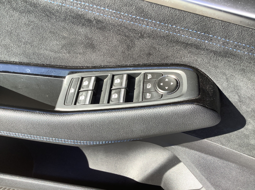 • Sellerie mixte tissu carbone / alcantara avec surpiqures bleues