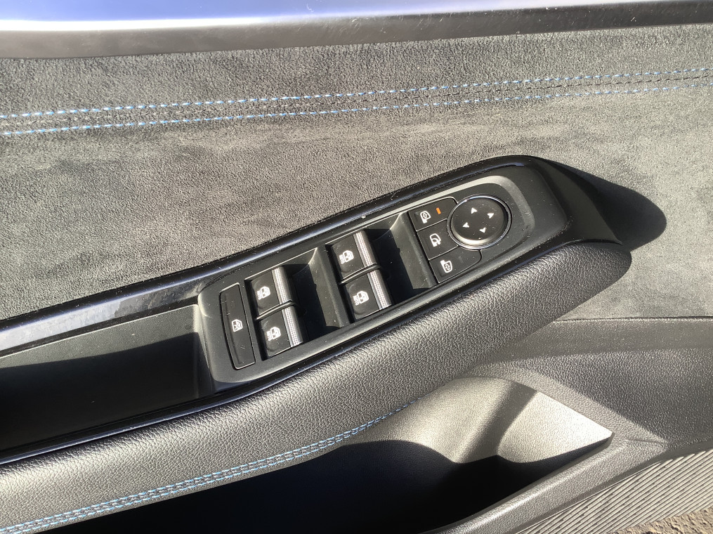 • Sellerie mixte tissu carbone / alcantara avec surpiqures bleues